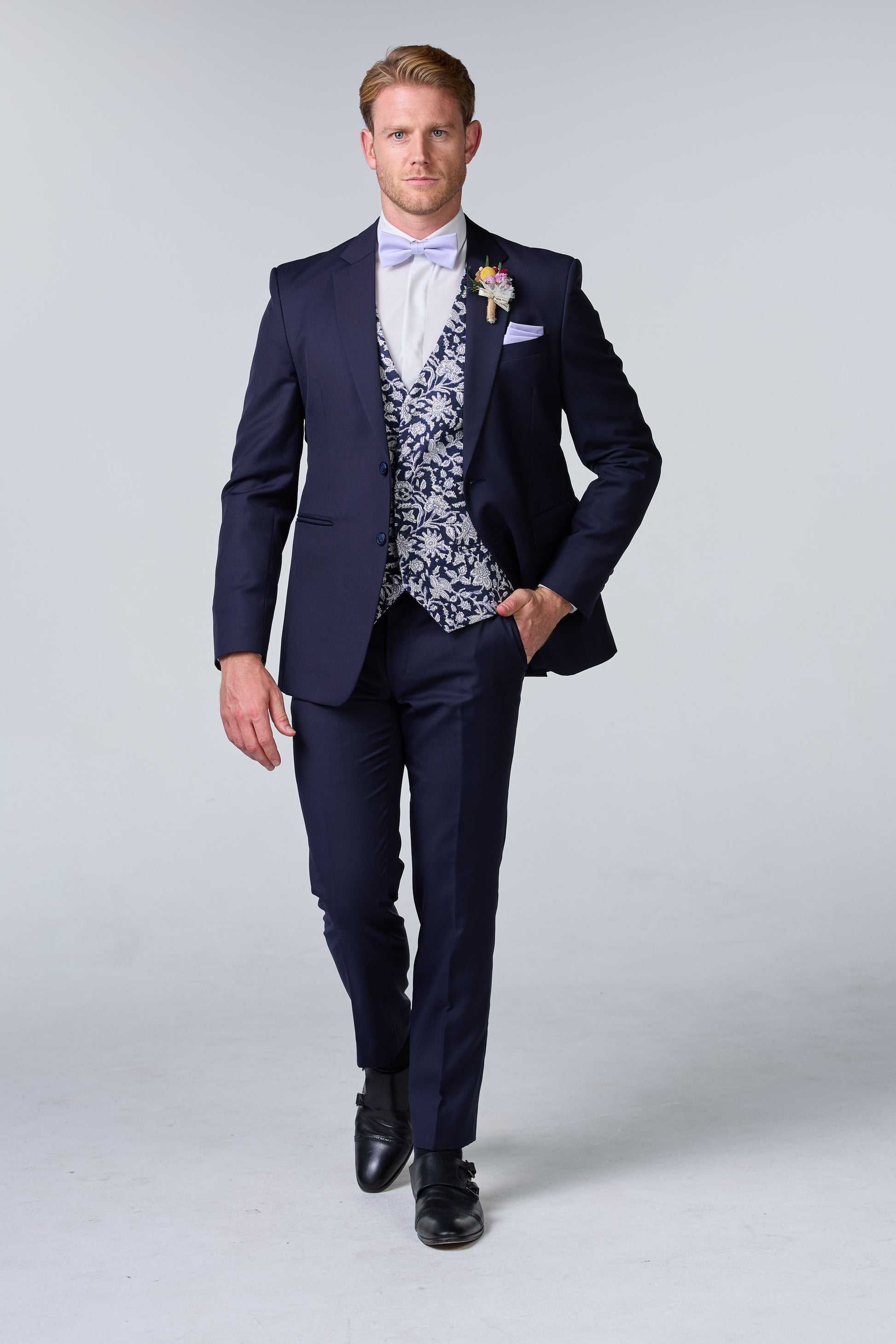 Blauer Hochzeitsanzug inkl. Weste mit Blumenmuster - essentials