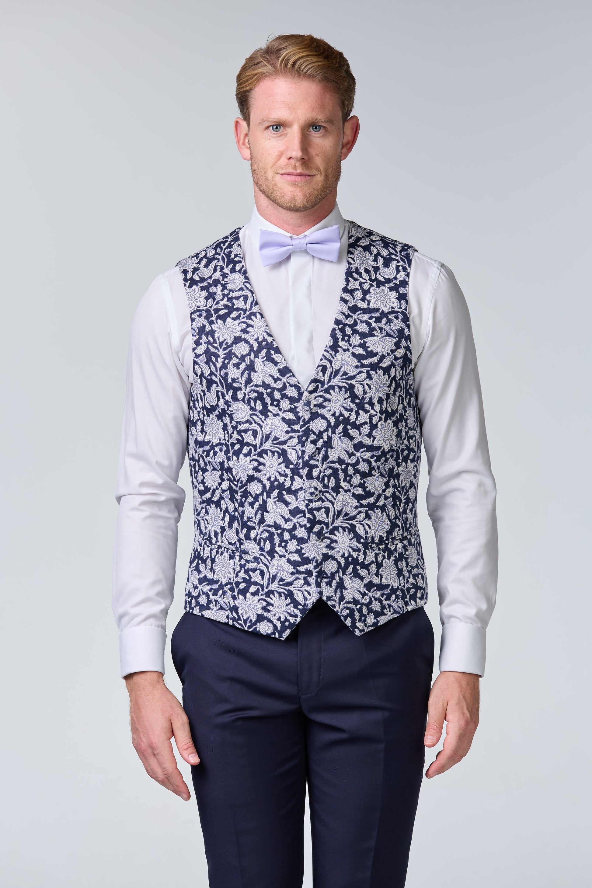 Blauer Hochzeitsanzug inkl. Weste mit Blumenmuster - premium