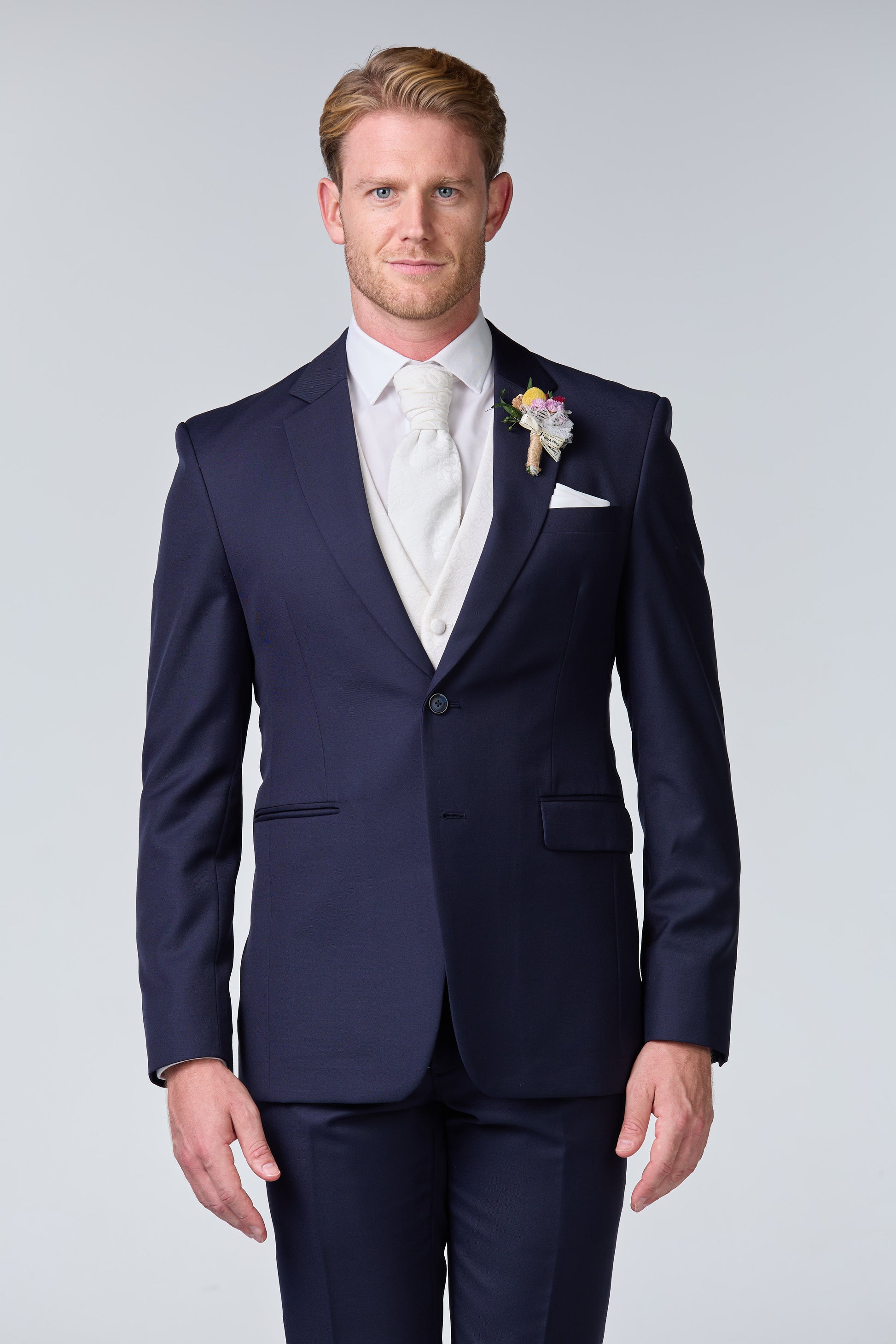 Bräutigam Outfit in Blau mit weißer Weste - budget