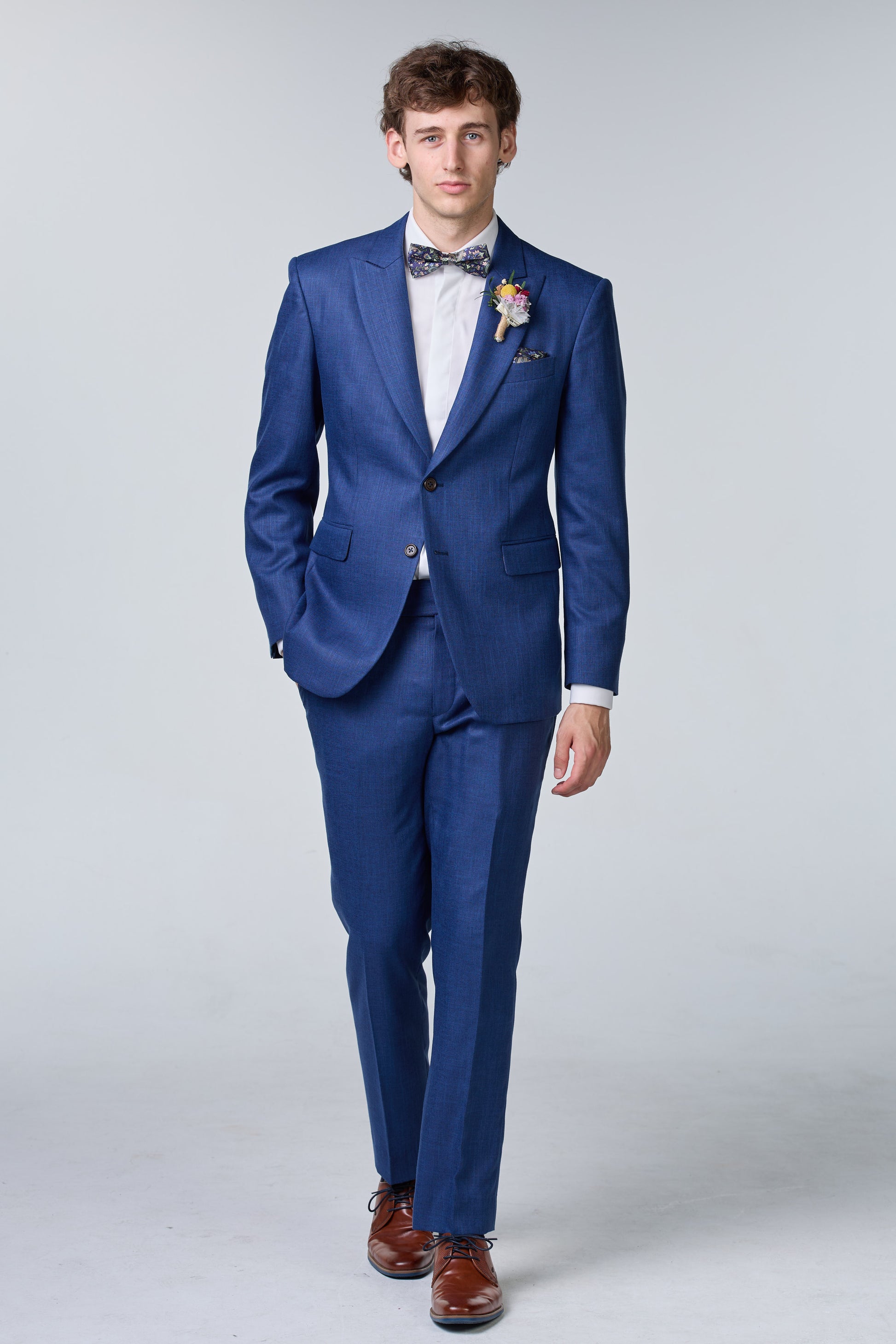 Blauer Anzug aus Wolle-Baumwolle Schicker blauer Anzug aus einer hochwertigen Wolle-Baumwoll-Mischung für Komfort und Stil.