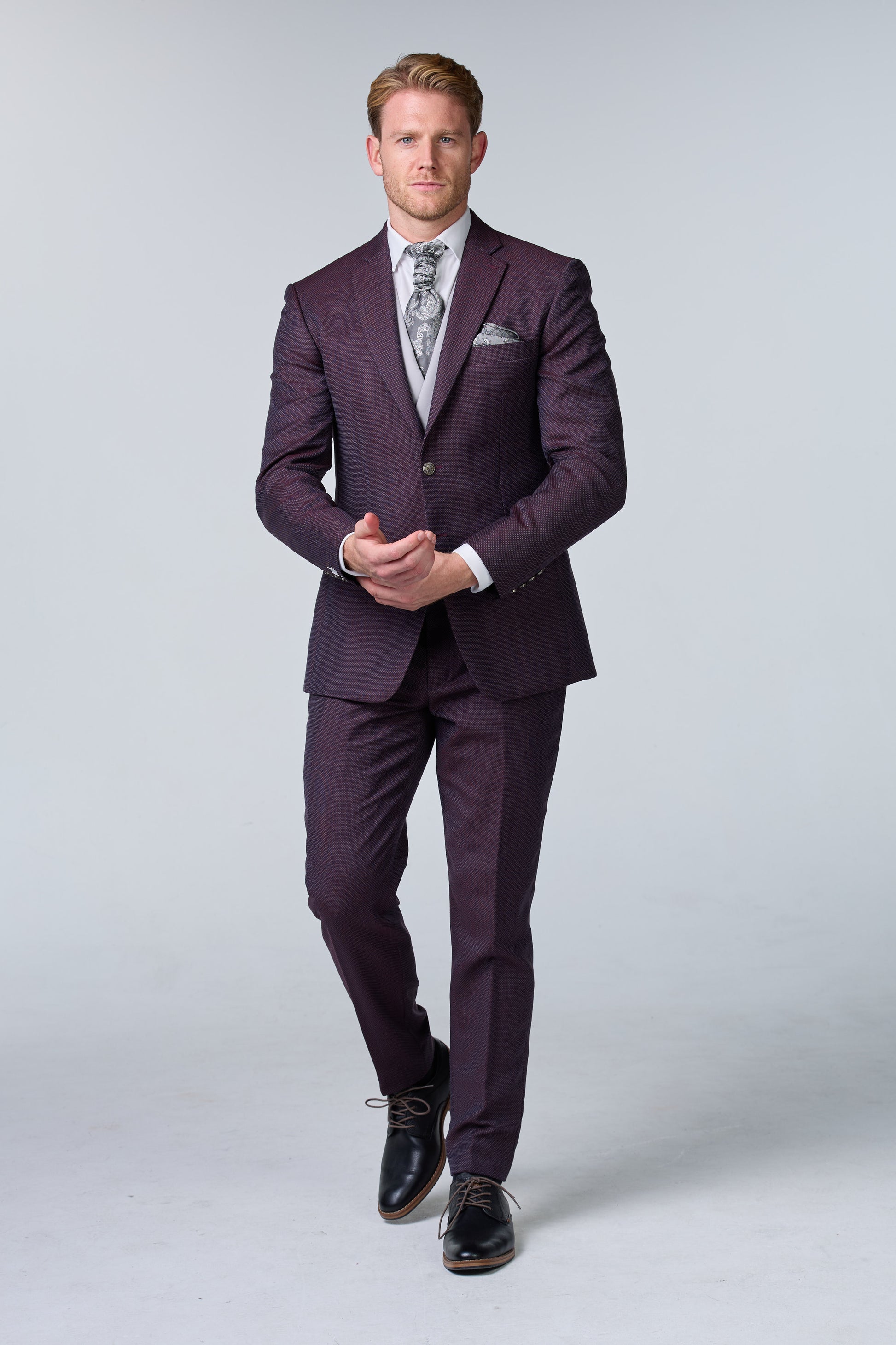 Rot-brauner Hochzeitsanzug mit Punktmuster - budget