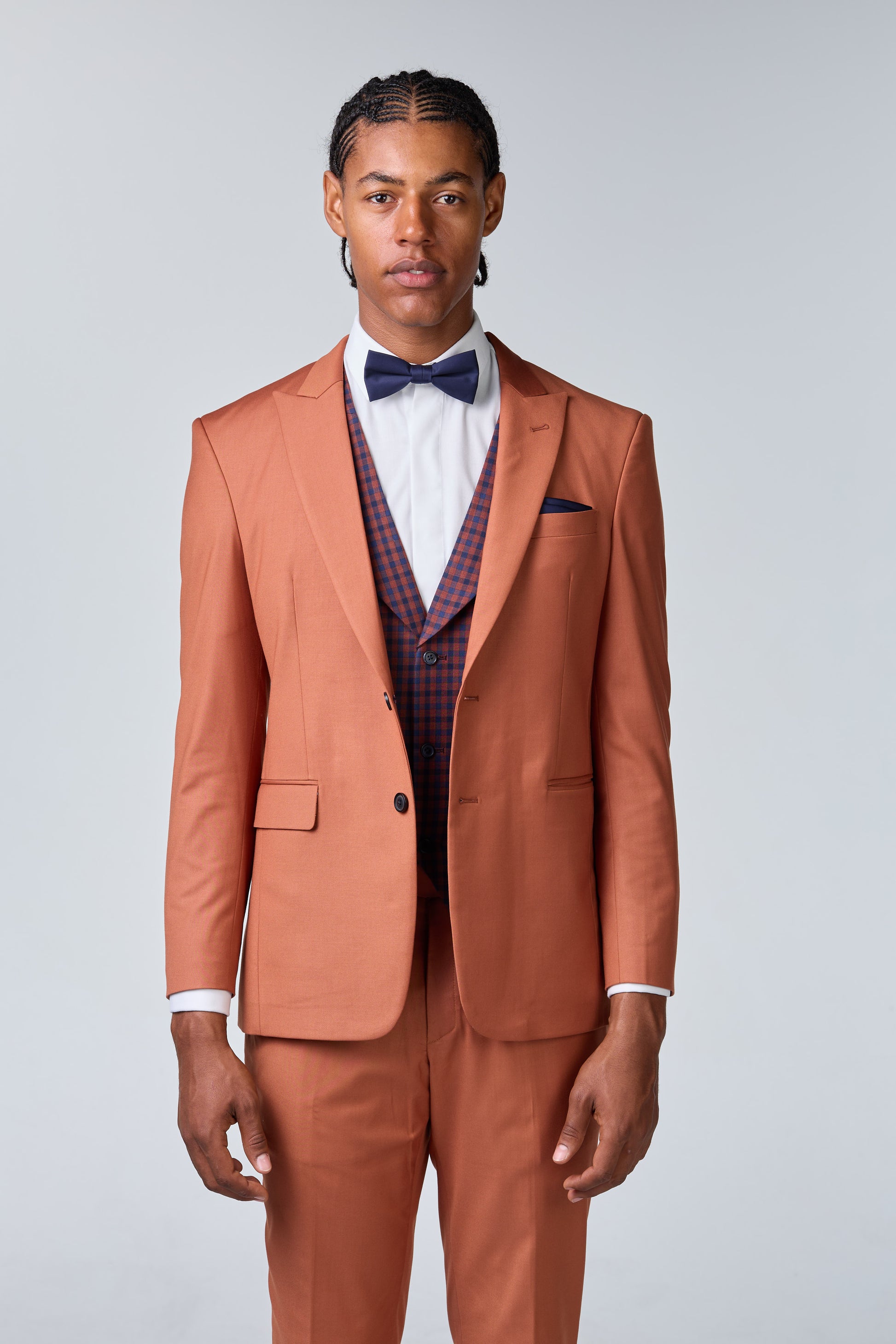 Terracotta Anzug mit steigendem Revers Dieser Terracotta Anzug mit steigendem Revers verleiht eine stilvolle und moderne Ausstrahlung.
